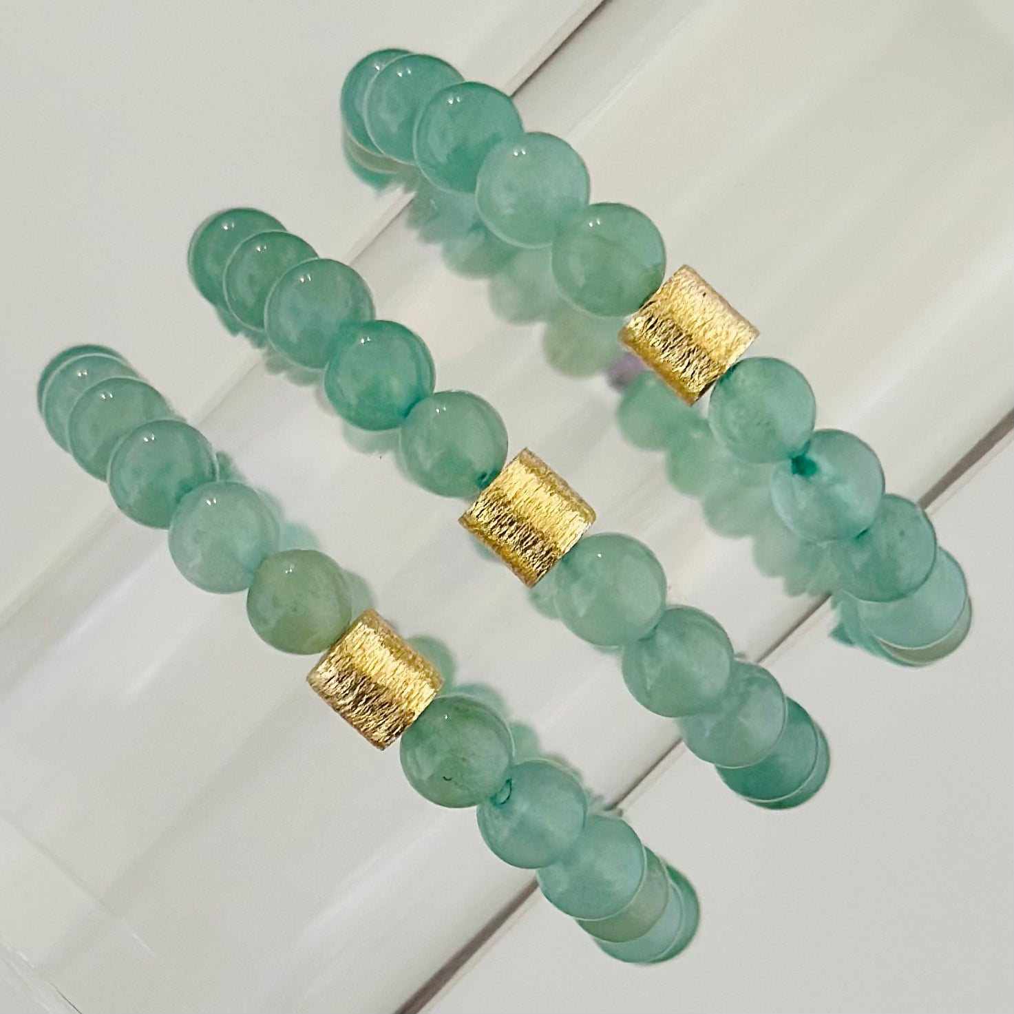 This bracelet features brushed gold-plated beads. We do not recommend long-term water submersion, spraying perfume on the bracelet, or makeup on the area worn.